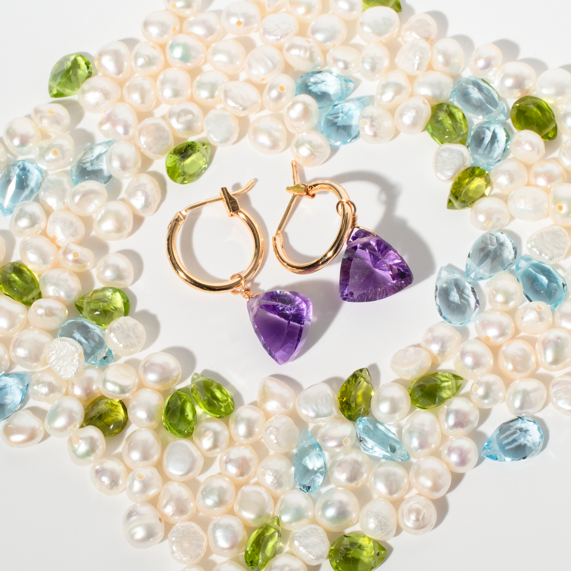 All of our gemstones & freshwater pearls are AAA grade and sourced from across the world from ethical and vetted suppliers. We only select highly faceted and clear gemstones and pearls with an iridescent rainbow hue.