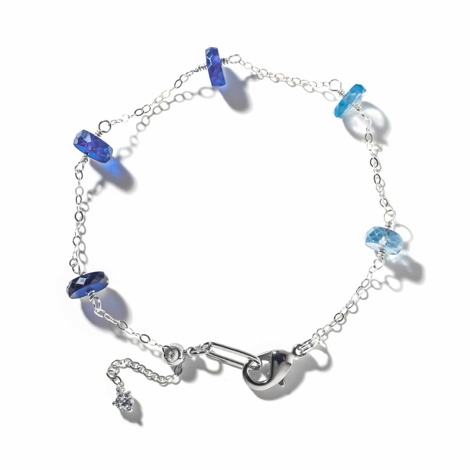 Brightly saturated sapphires dazzle with a tyre faceted cut are delicately strung on a ultra-fine sterling silver chain. Bold yet dainty with an adjusting slider clasp for easy wear.