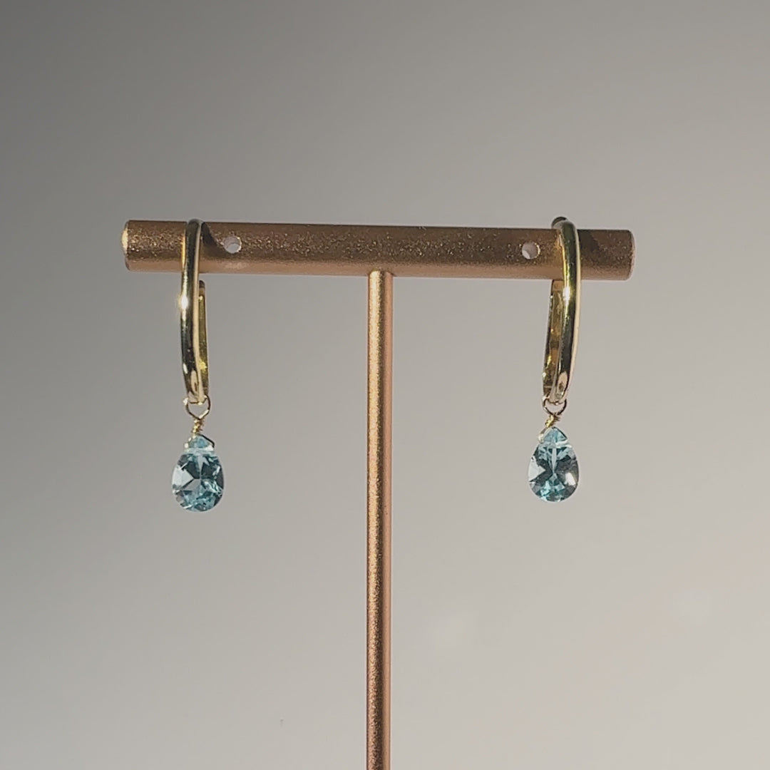 Blue Topaz Pear Cut 14K Gold Ear Cuffs