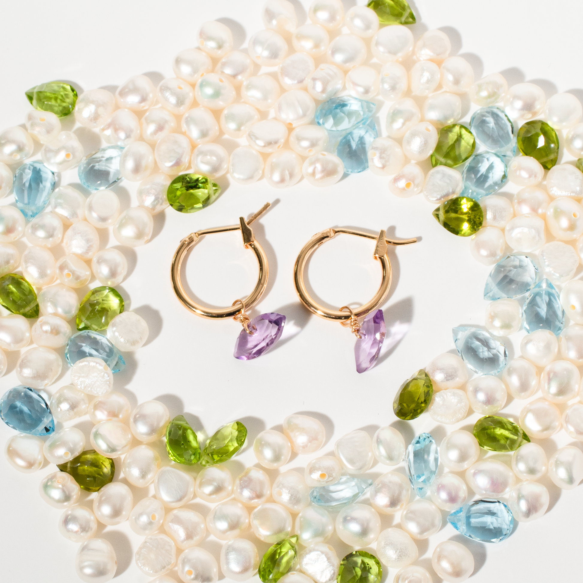 All of our gemstones & freshwater pearls are AAA grade and sourced from across the world from ethical and vetted suppliers. We only select highly faceted and clear gemstones and pearls with an iridescent rainbow hue.