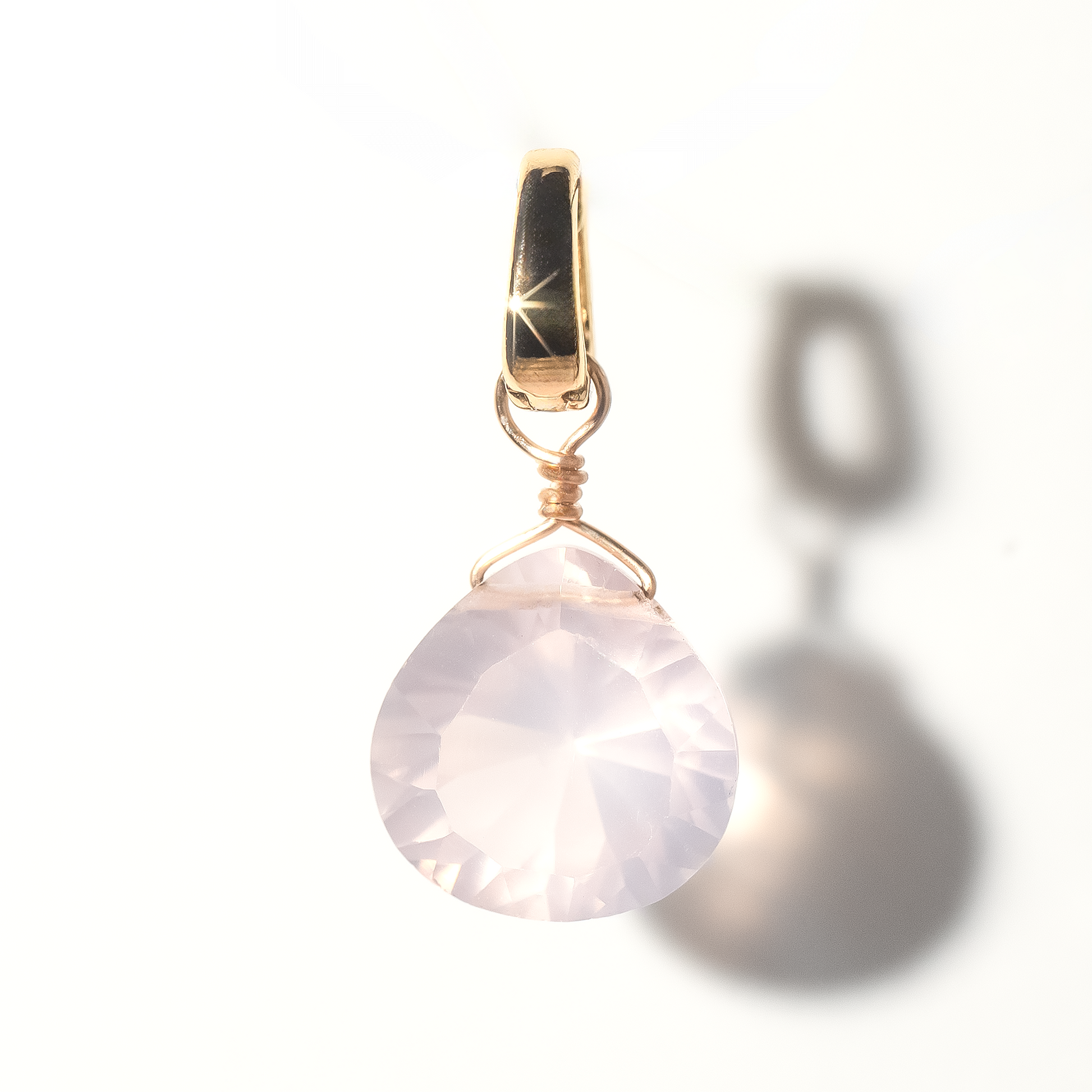 Radiant and delicate with a subtle opaque milky pink hue, this Teardrop Rose Quartz Duet Charm exudes calming, soothing energy.