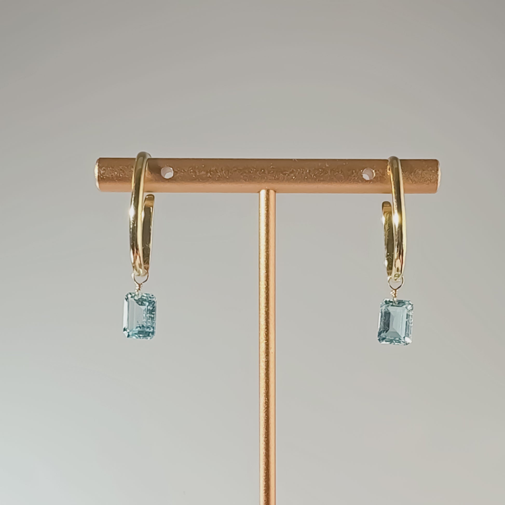Blue Topaz Emerald Cut 14K Gold Ear Cuffs