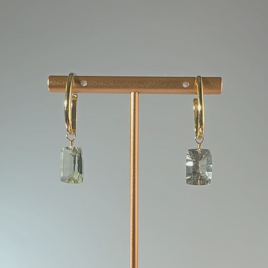 Green Amethyst Rectangle Cut 14K Gold Ear Cuffs