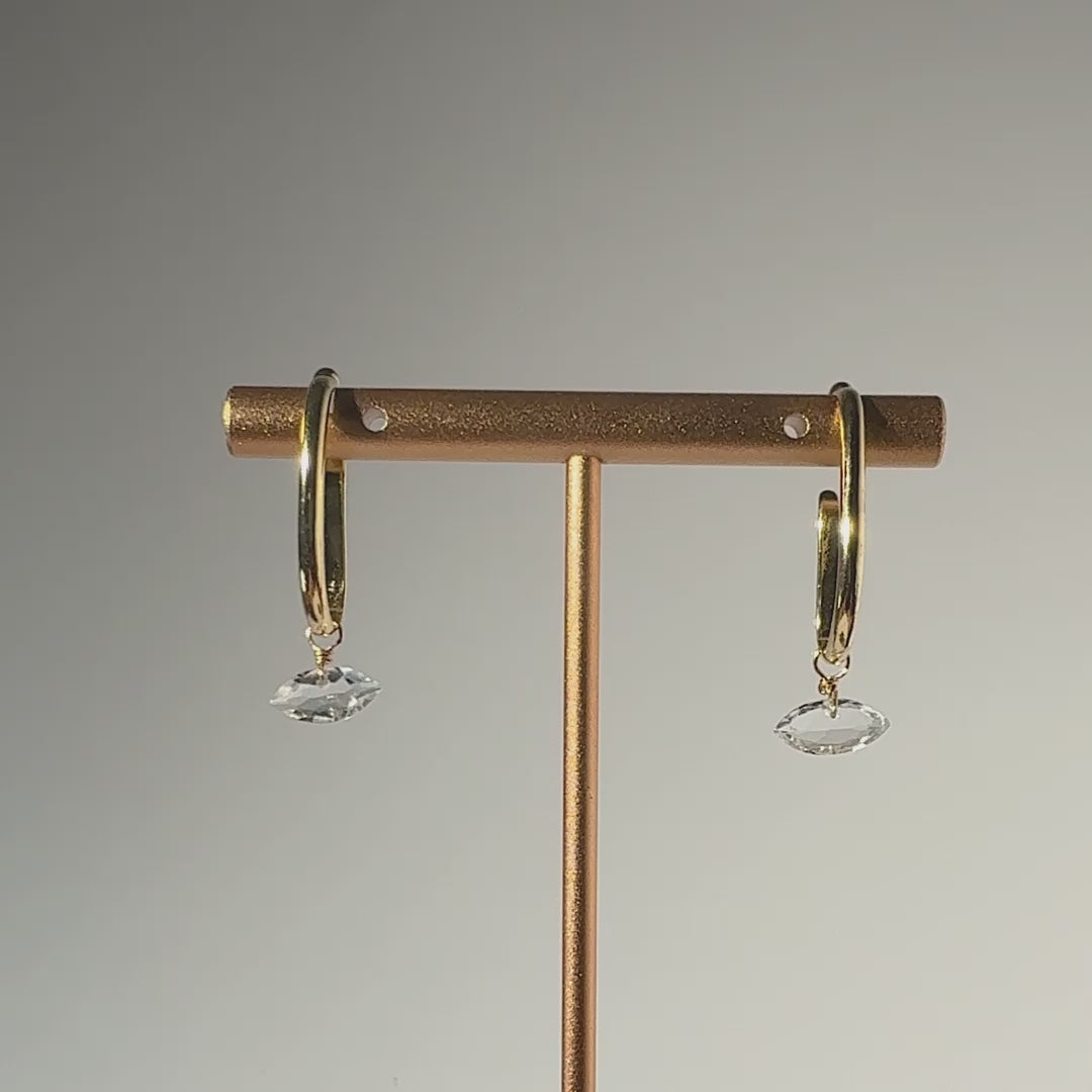 Rock Crystal Marquise Cut 14K Gold Ear Cuffs