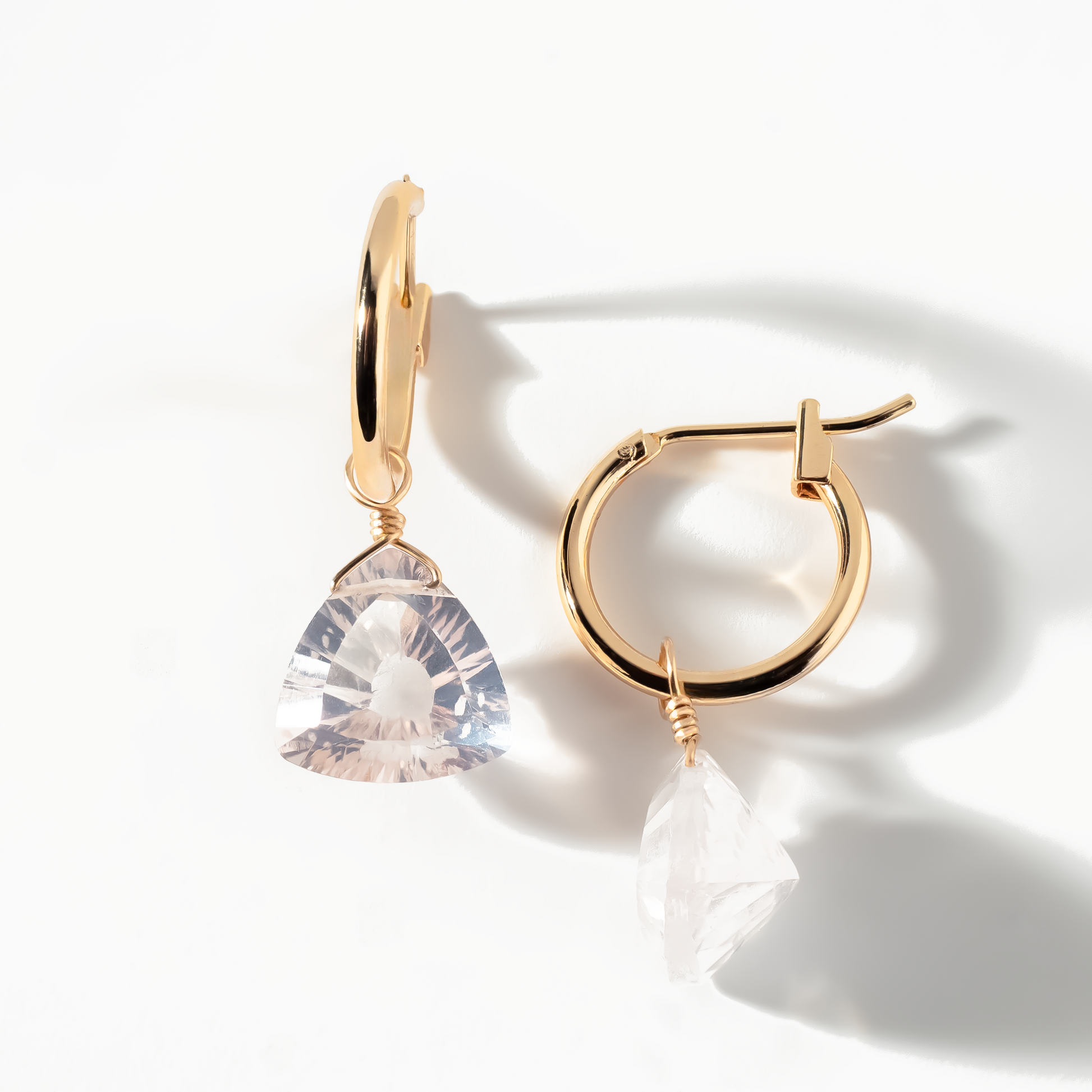 Radiant and delicate with a subtle opaque milky pink hue, these Rose Quartz Trillion Earrings exudes calming, affectionate energy.